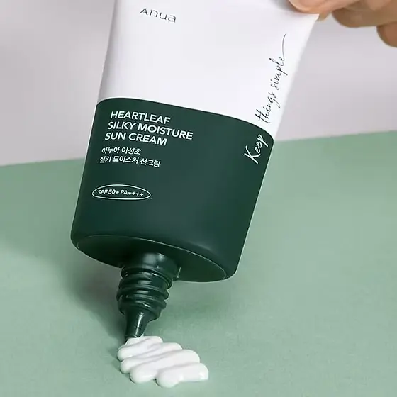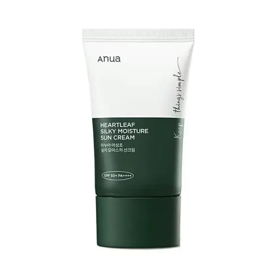 El Anua Heartleaf Silky Moisture Sun Cream SPF50+ PA++++ es un protector solar coreano que protege la piel del sol mientras la calma e hidrata gracias a su fórmula con Heartleaf. Su textura ligera y sedosa se absorbe rápidamente, dejando un acabado natural sin sensación grasosa, ideal para el uso diario.