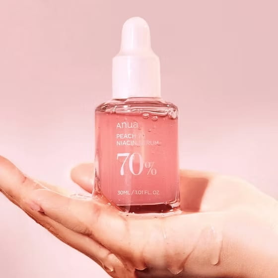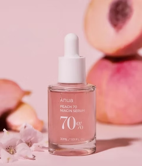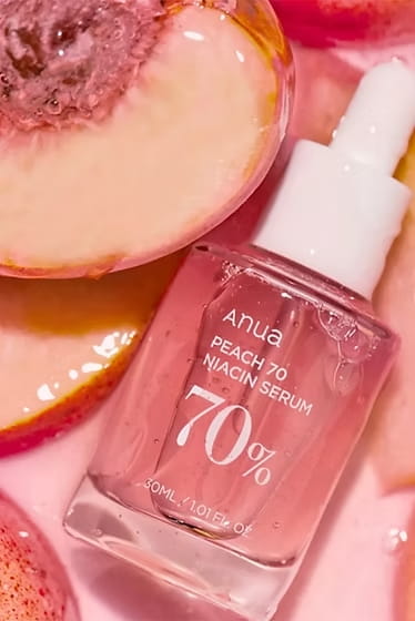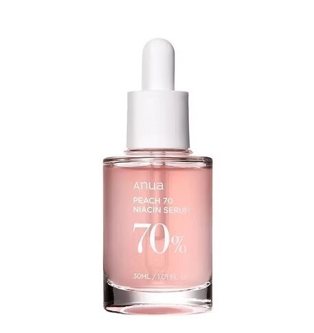 El ANUA Peach 70% Niacinamide Serum es un suero facial coreano formulado con 70 % de extracto de durazno y 5 % de niacinamida que ayuda a hidratar, iluminar y mejorar el tono de la piel. Su textura ligera se absorbe rápidamente y deja el rostro suave, luminoso y con un aspecto saludable.