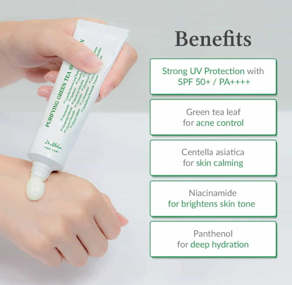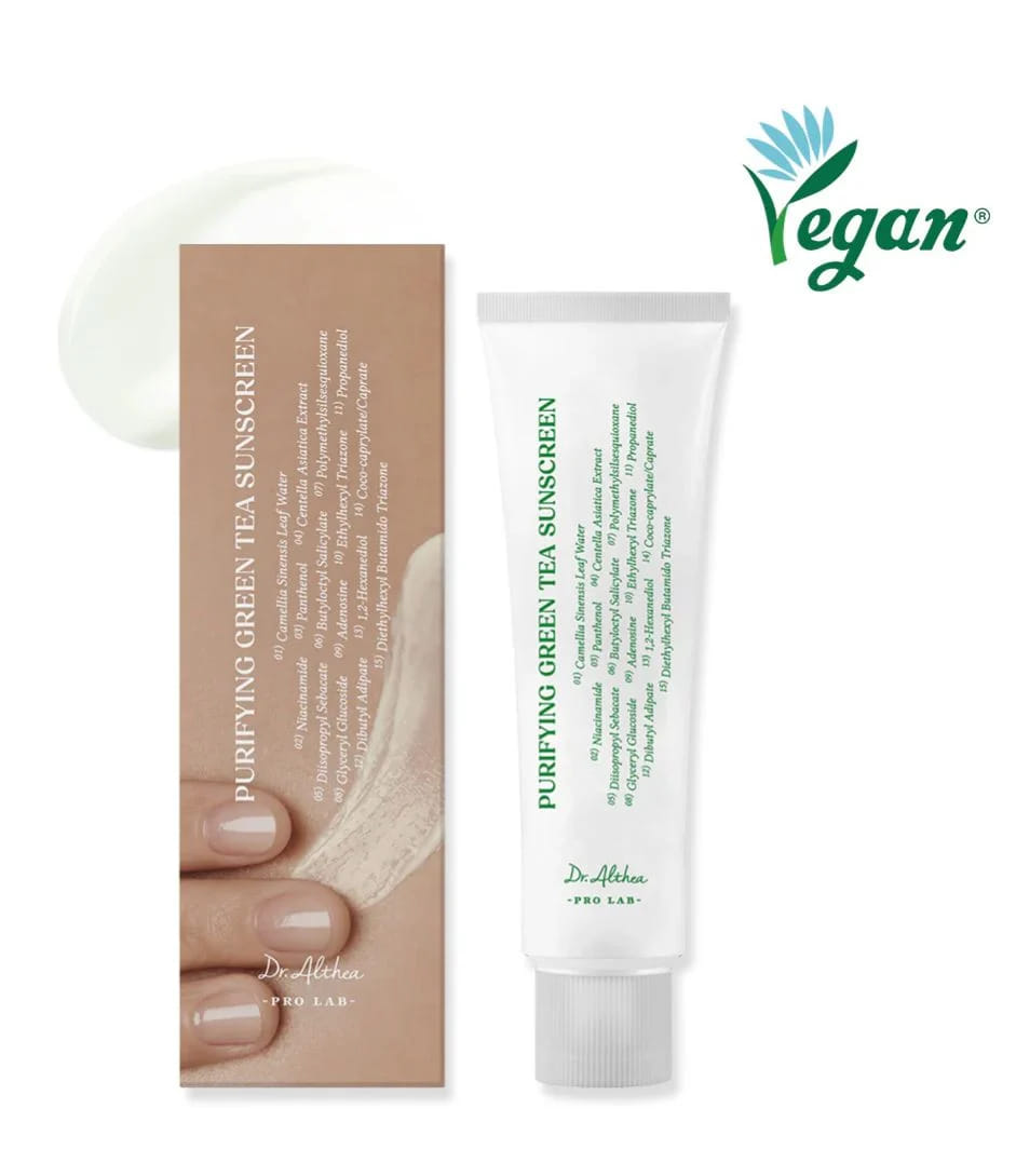 El Dr. Althea Green Tea Fresh Sunscreen SPF50+ PA++++ es un protector solar facial coreano diseñado para ofrecer alta protección contra los rayos UVA y UVB mientras calma y equilibra la piel. Su fórmula combina filtros solares modernos con ingredientes botánicos que ayudan a proteger la piel del daño solar y de los factores ambientales.