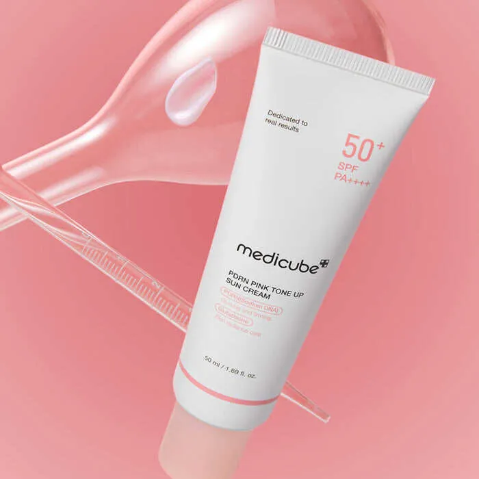 El Medicube PDRN Pink Tone Up Sun Cream SPF50+ PA++++ es un protector solar coreano que protege la piel del sol mientras ilumina y unifica el tono del rostro gracias a su efecto tone-up rosado. Su fórmula con PDRN, niacinamida y colágeno ayuda a hidratar, mejorar la elasticidad y dejar un acabado radiante y natural.